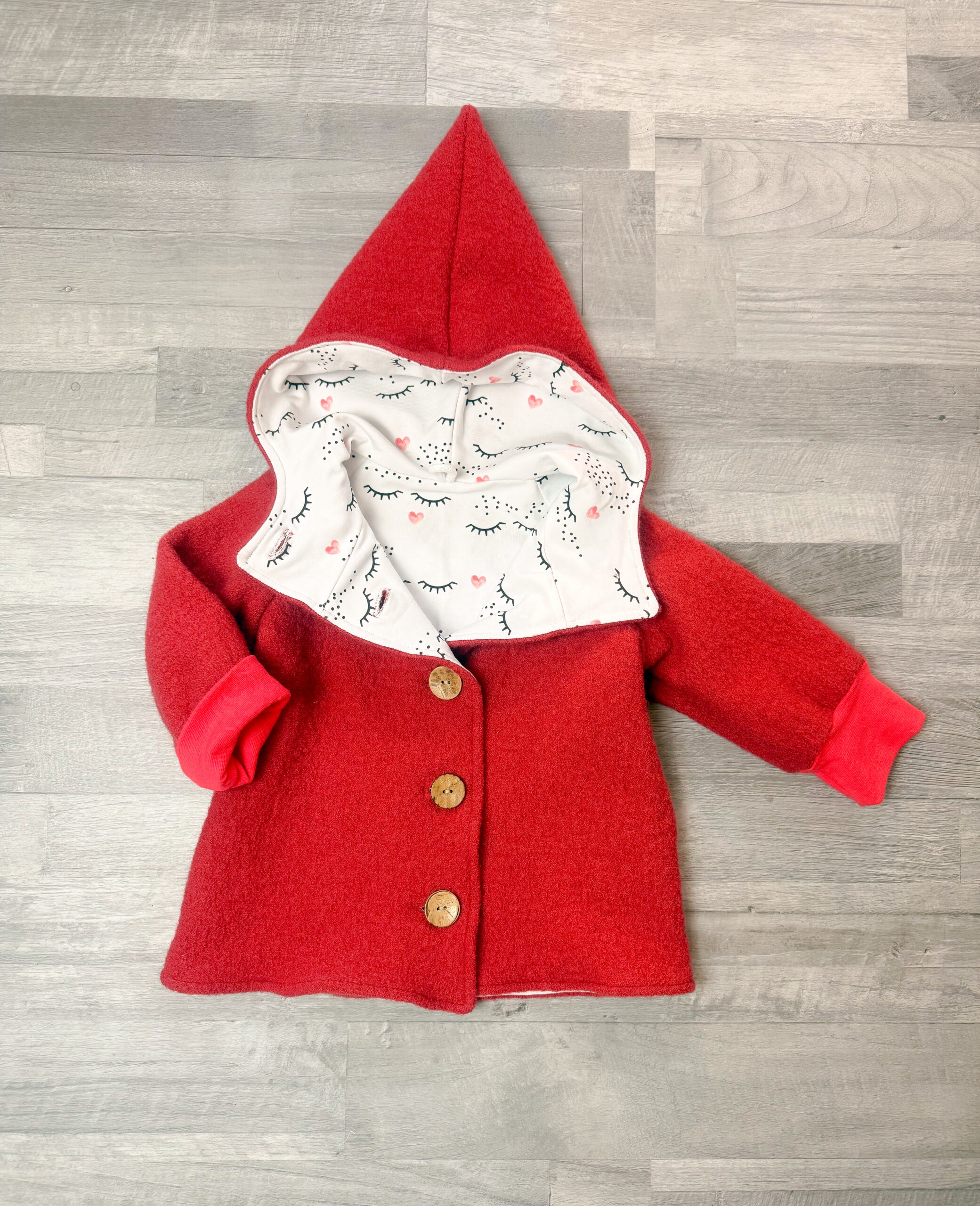 Jede Jacke ist ein Unikat, sorgfältig in Handarbeit gefertigt und auf Langlebigkeit ausgelegt. Ideal für Spaziergänge, Ausflüge oder den Alltag – warm, bequem und nachhaltig.