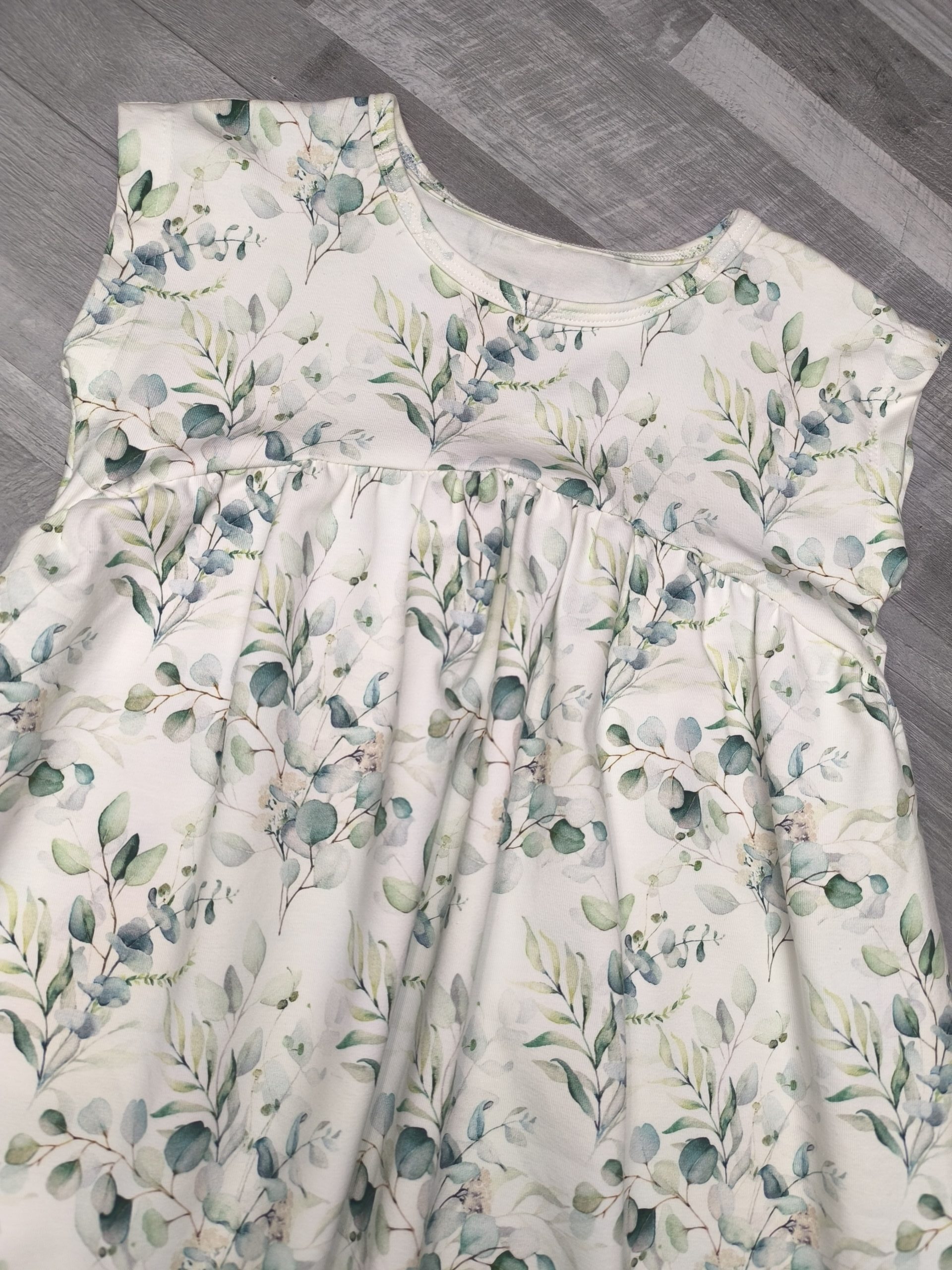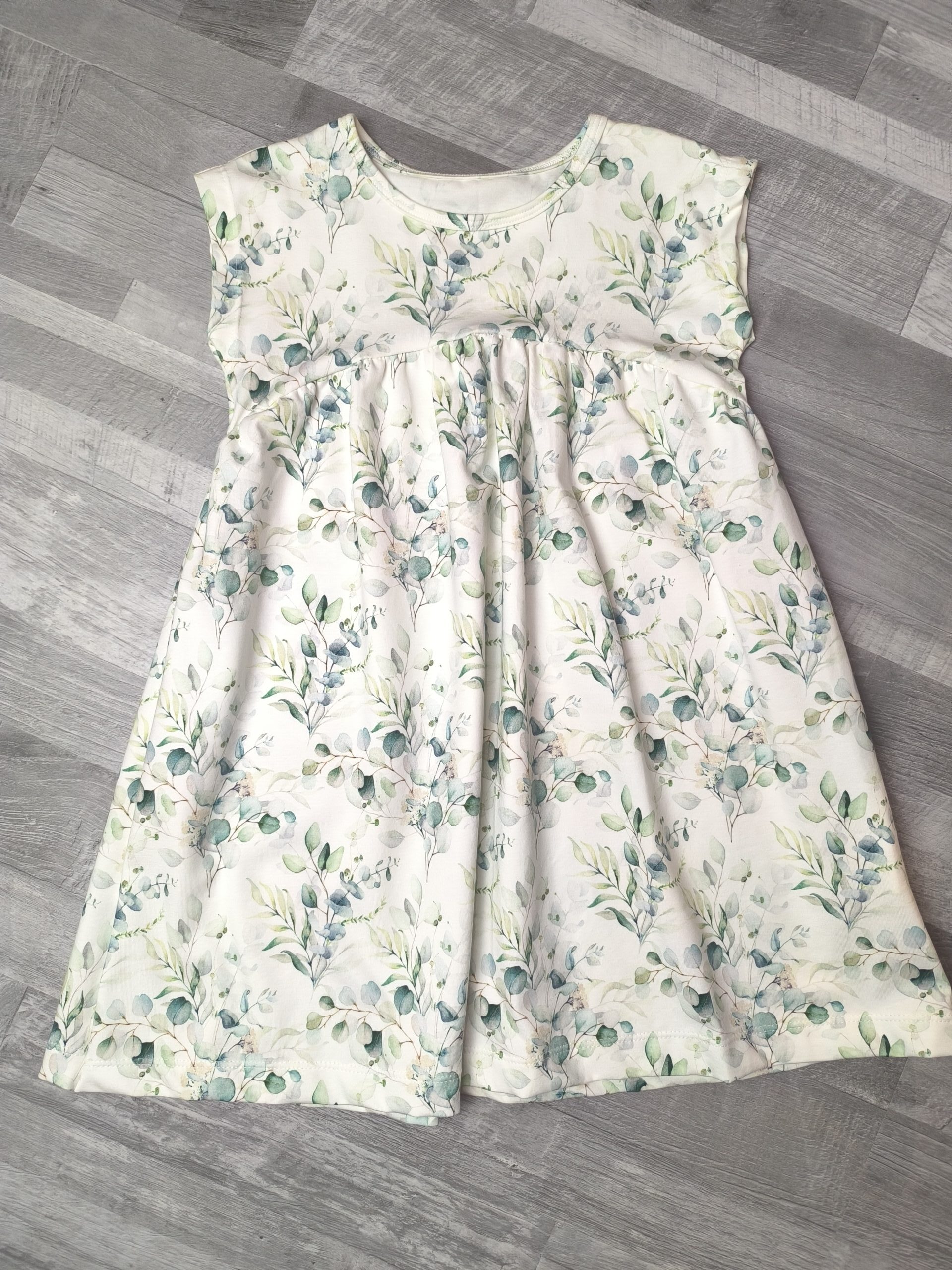 Dieses wunderschöne Kleid im zarten Eukalyptus-Design wurde mit ganz viel Herz handgefertigt. Der liebevoll ausgewählte Stoff wirkt sanft und zeitlos, perfekt für kleine Lieblingsmenschen und viele besondere Momente.
